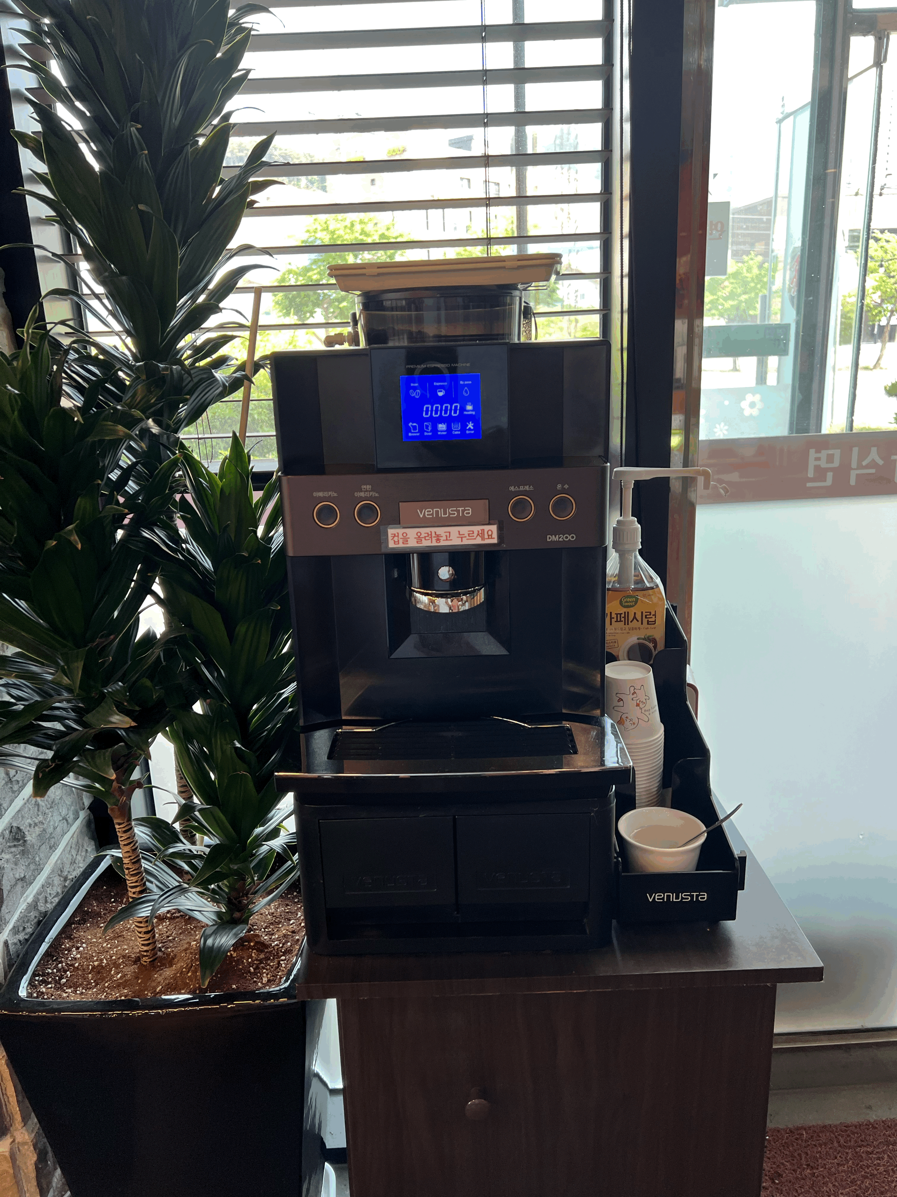 맛있게 배불리 먹고 계산을 하고 나니 원두커피 머신이 있었습니다. 일반 믹스커피 머신이 아니라는 점에서 식사 후 카페 일정이 없으시다면 무조건 챙겨가셔야 할 포인트라고 생각이 들더군요. 저희는 바로 카페를 갈 생각에 맛을 볼 수는 없었습니다.