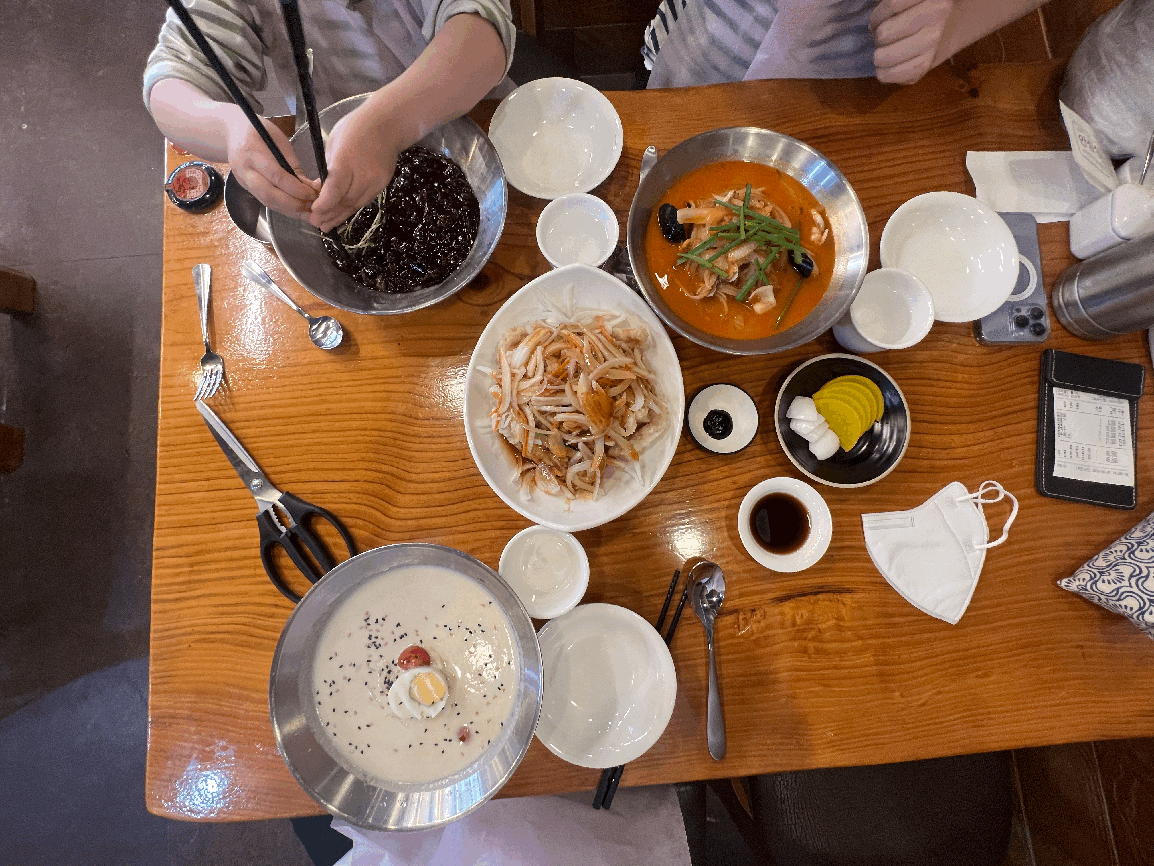 참고로 저는 회사 점심으로 3일 연속 콩국수를 사 먹은 적도 있는 콩국수 마니아입니다. 예를 들어 돈가스 가게에 들어가서 메뉴판에 콩국수가 보이면 눈이 뒤집혀서 콩국수를 시키는 환자 수준이죠. 환자의 입장에서 판단했을 때 용인 맛집으로 알려진 공리의 콩국수는 사실 많이 아쉽습니다. 위에 짜장면 리뷰와 같이 탱글한 면발이 차가운 콩국물을 만나 약간은 질긴 수준으로 변하였고 콩국물은 콩 고유의 고소한 맛을 살리기보다 단맛이 너무 강하여 아쉬움이 느껴졌습니다. 물론 콩국수는 소금/설탕 파로 나뉘는 것은 알고 있으며 그 각각의 매력이 있음을 알고 있습니다만, 첫 서빙 당시 이미 단 맛이 너무 강하여 호불호를 탈 수 있겠다는 생각이 들었습니다.