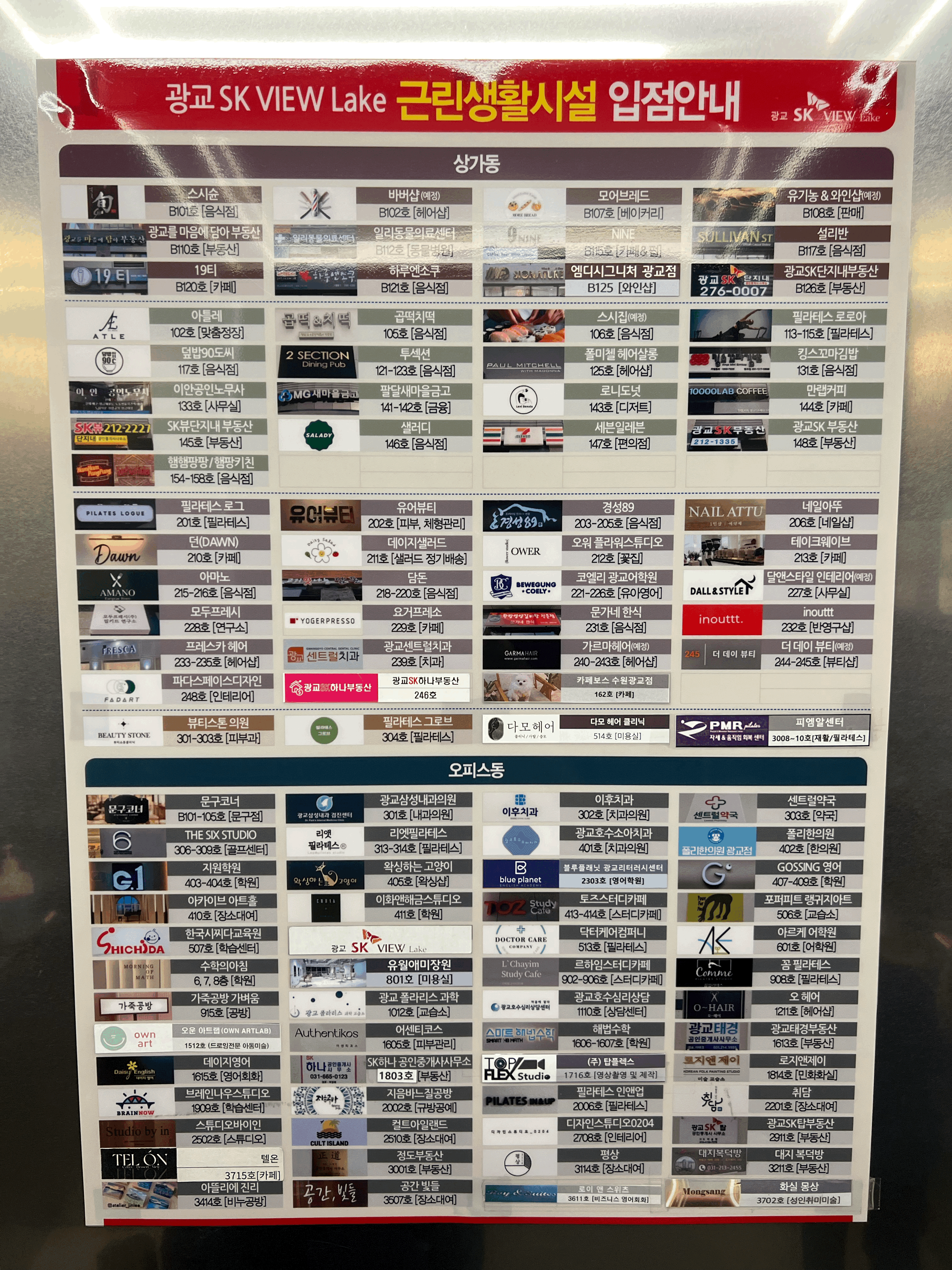 엘리베이터에 타고나니 오피스동과 상가동 내 위치한 다양한 매장(?)들을 볼 수 있습니다. 하지만 저녁시간 대 방문이어서 그랬는지 모르겠지만, 엘리베이터에 탑승하신 거의 모든 인원이 41층 스타벅스를 향하고 있었습니다.