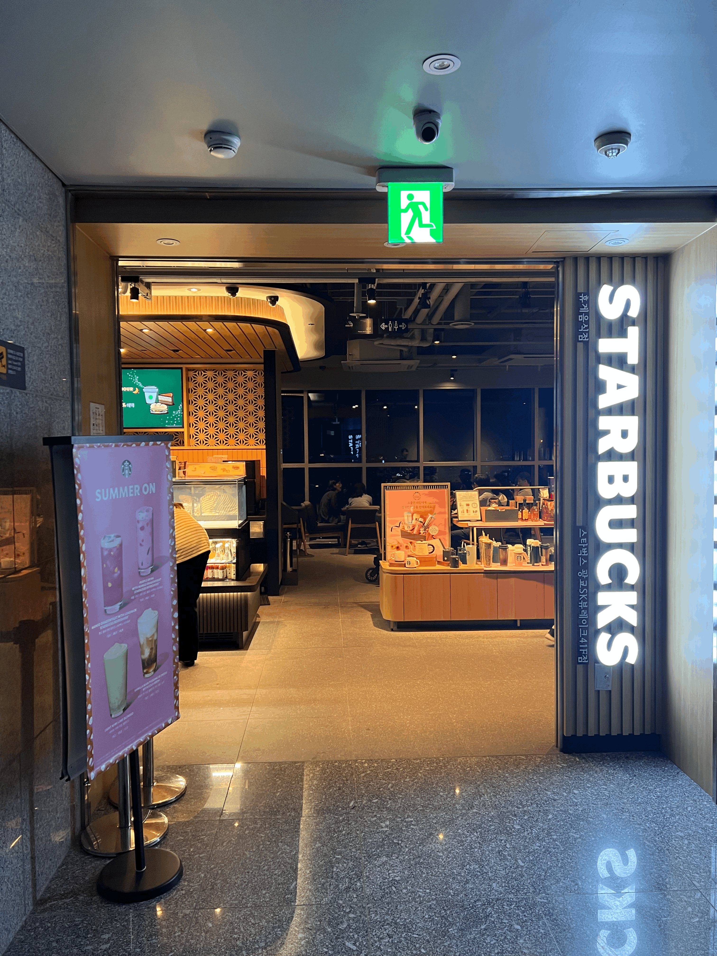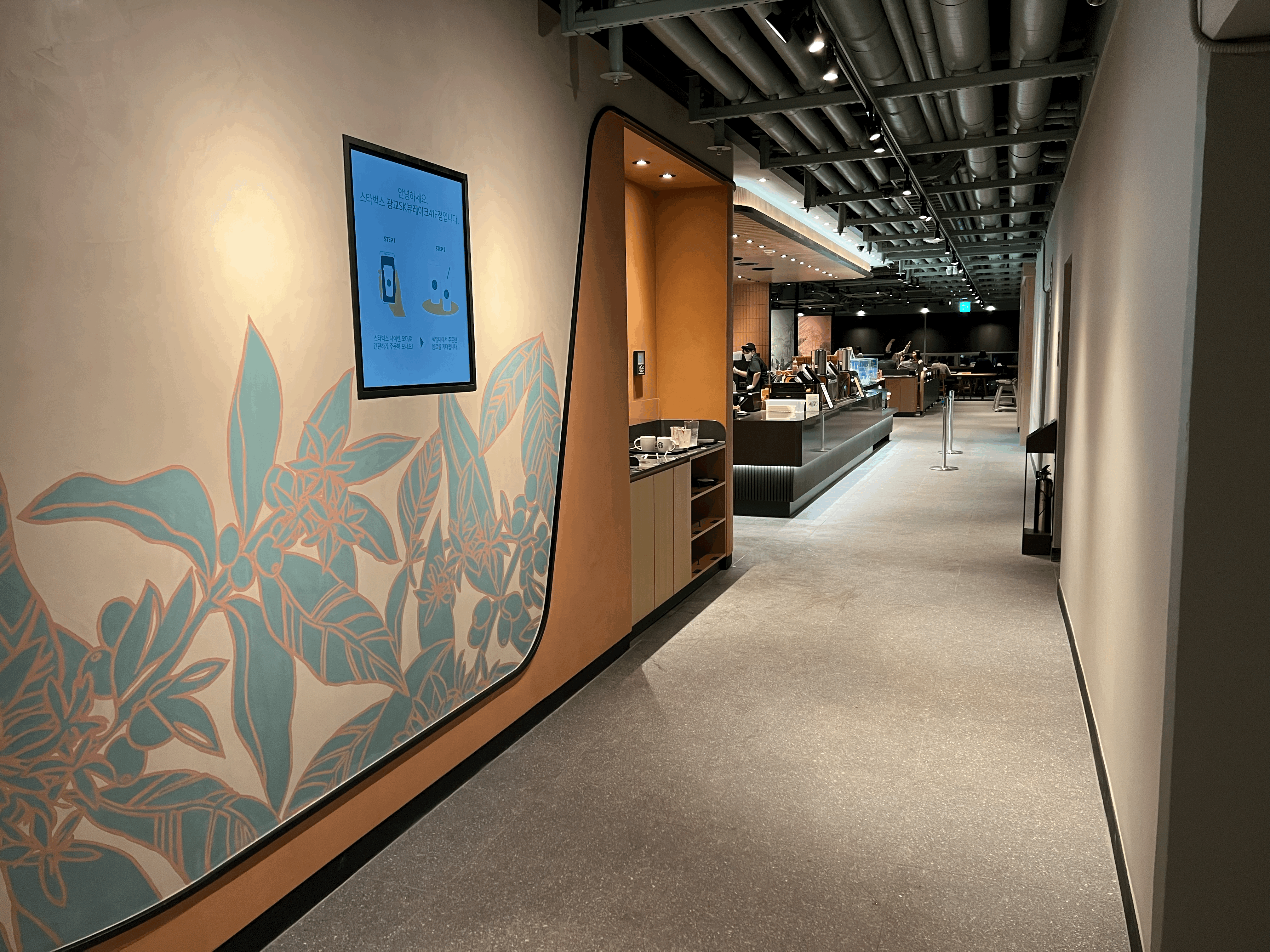 제가 가본 스타벅스 중 가장 최 고층이지만, 매장 입구 모습은 여느 스타벅스와 다르지 않았습니다. 되려 외부에서 통하는 문이 없이 건물 내부에서 이동한다는 점에서 어떻게 보면 답답한 느낌이 들 수 도 있는 매장 입구입니다. 저 멀리 바깥 뷰가 보이지만 멀어서 그런지 41층이라는 실감이 나지는 않네요.