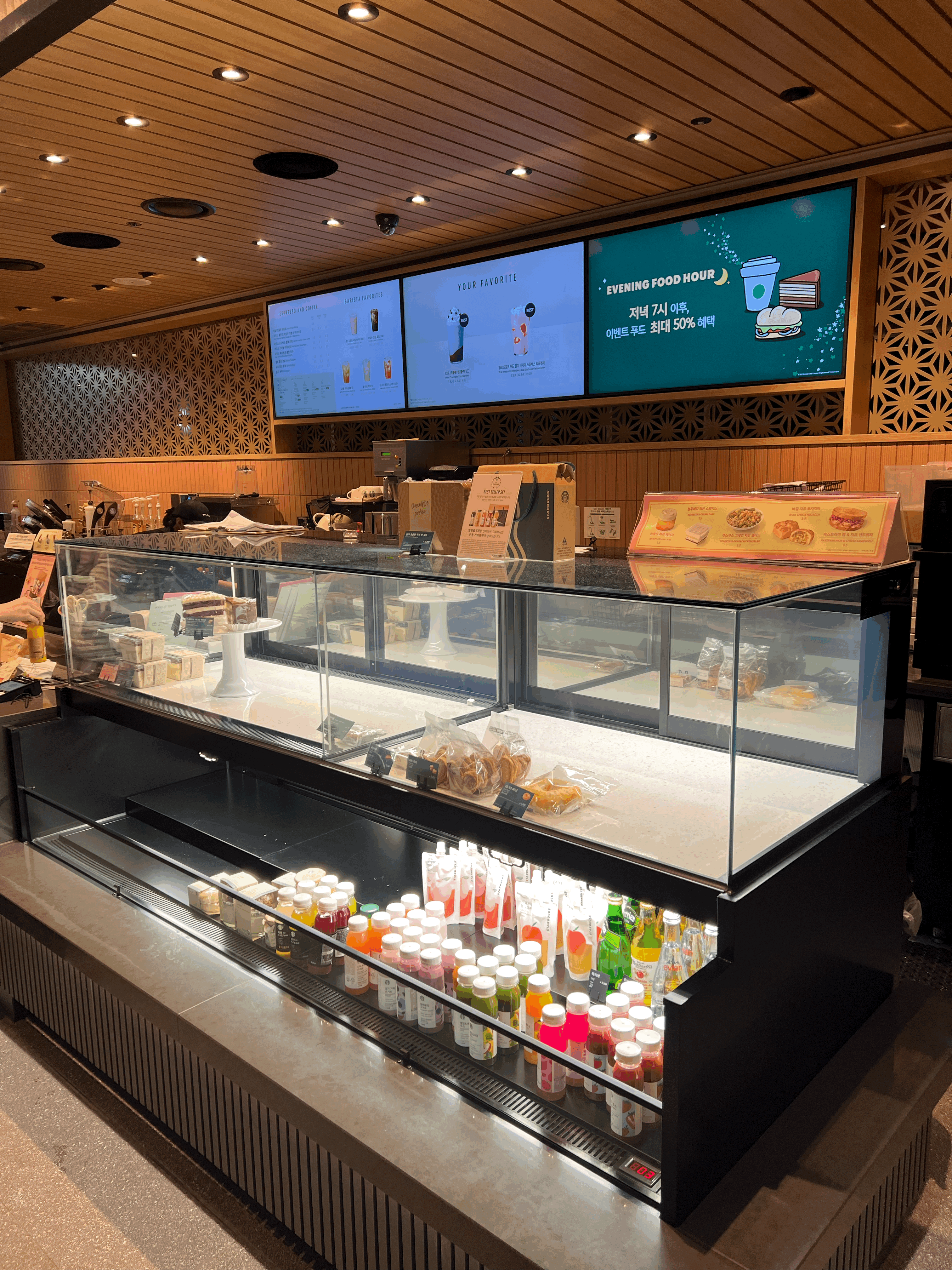 나름 특색 있는 매장이라고 생각은 들었지만 광교SK뷰레이크 스타벅스 41F만을 위한 메뉴나, 굿즈는 없었습니다. 조금 아쉬운 마음이 없잖아 있네요. 늦은 시간 방문해서인지 푸드 메뉴도 거의 다 팔렸습니다. 뒤에 말씀드리겠지만 매장 특성상 뷰 감상을 위하여 한번 앉으면 오랜 시간 있다 보니(자리 차지하기가 힘듭니다) 푸드메뉴가 안 팔릴 수 없는 구조겠더군요.