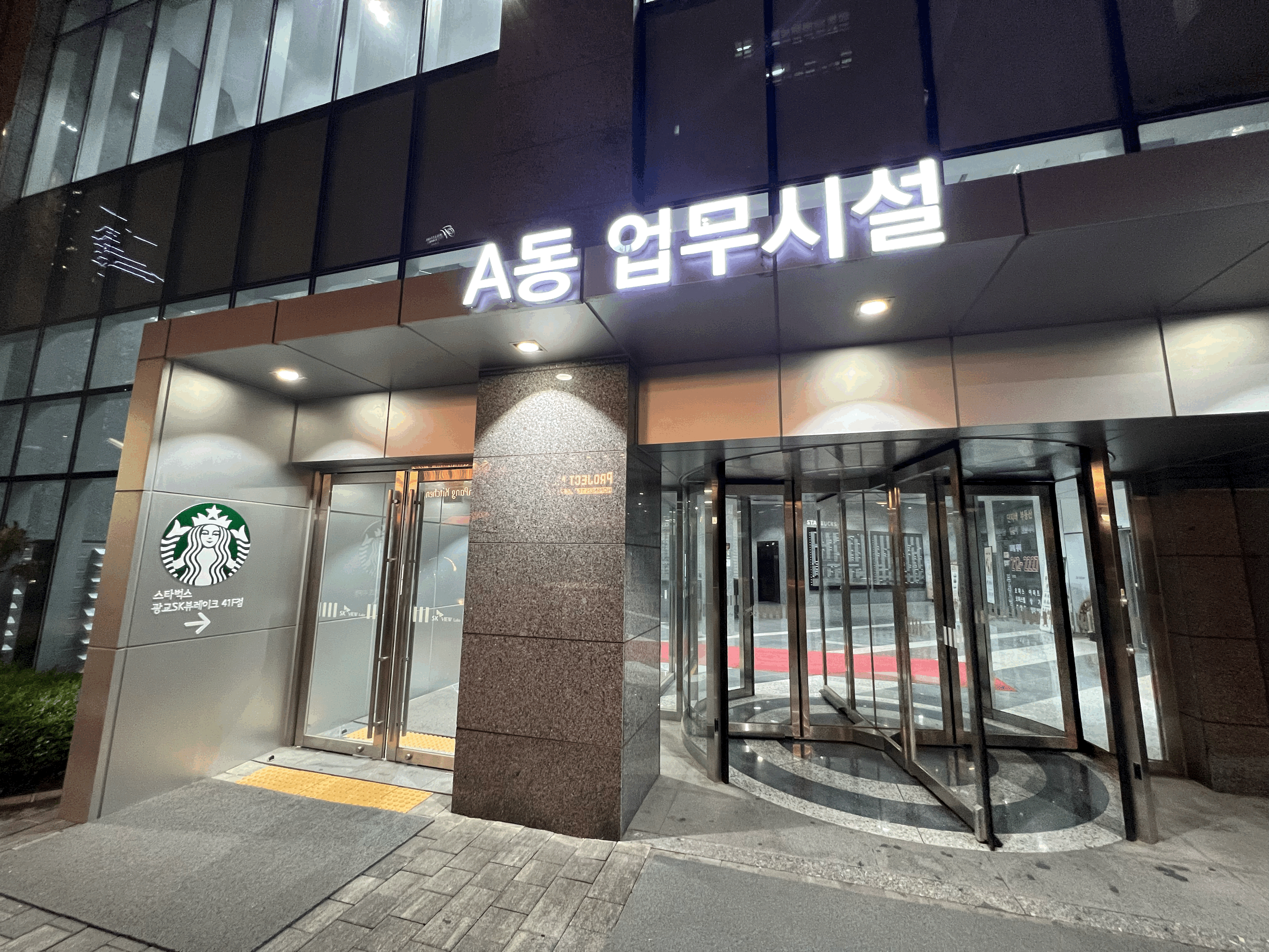 A동 업무시설에 도착해서야 스타벅스 광교SK뷰레이크 41F이라는 안내문구가 보이는군요. 저 같은 길치에게는 한줄기 빛과 같았습니다.
