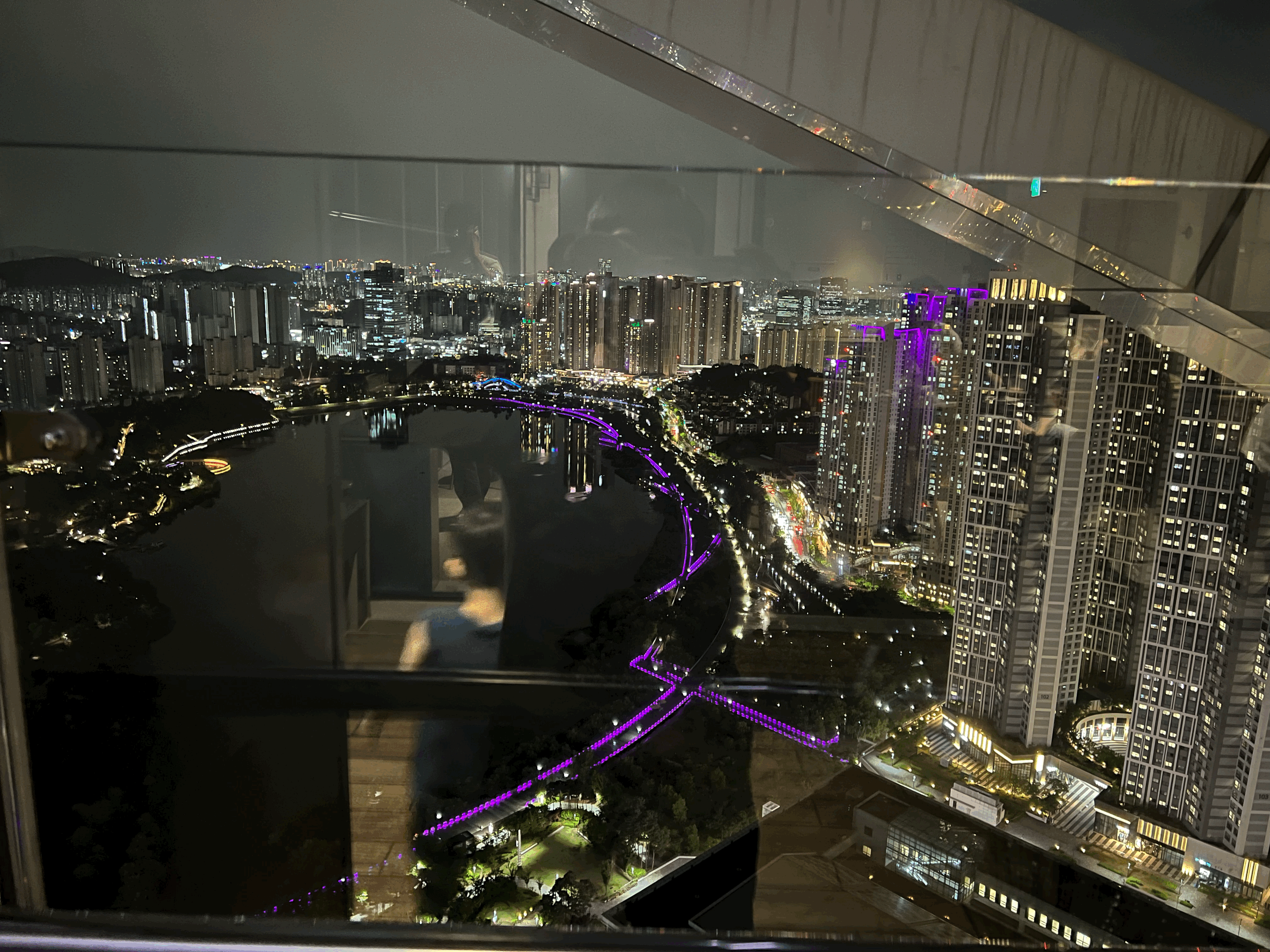 광교 SK뷰 레이크 스타벅스 41F에는 매장 입구 기준으로 좌/우 양 끝에 두 개의 테라스가 존재합니다. 테라스는 강화유리로 키보다 높이 설치되어 있어 안전하고요. 자리에 앉지 못하여 반사광에 야경을 못 본 이들을 위한 공간입니다. 광교 호수뷰가 한눈에 담기는 것이 너무 아름답습니다. 같이 간 아이도 밤이어서 무서워하기보다 너무 예쁘다며 방방 뛰고 놀았습니다.