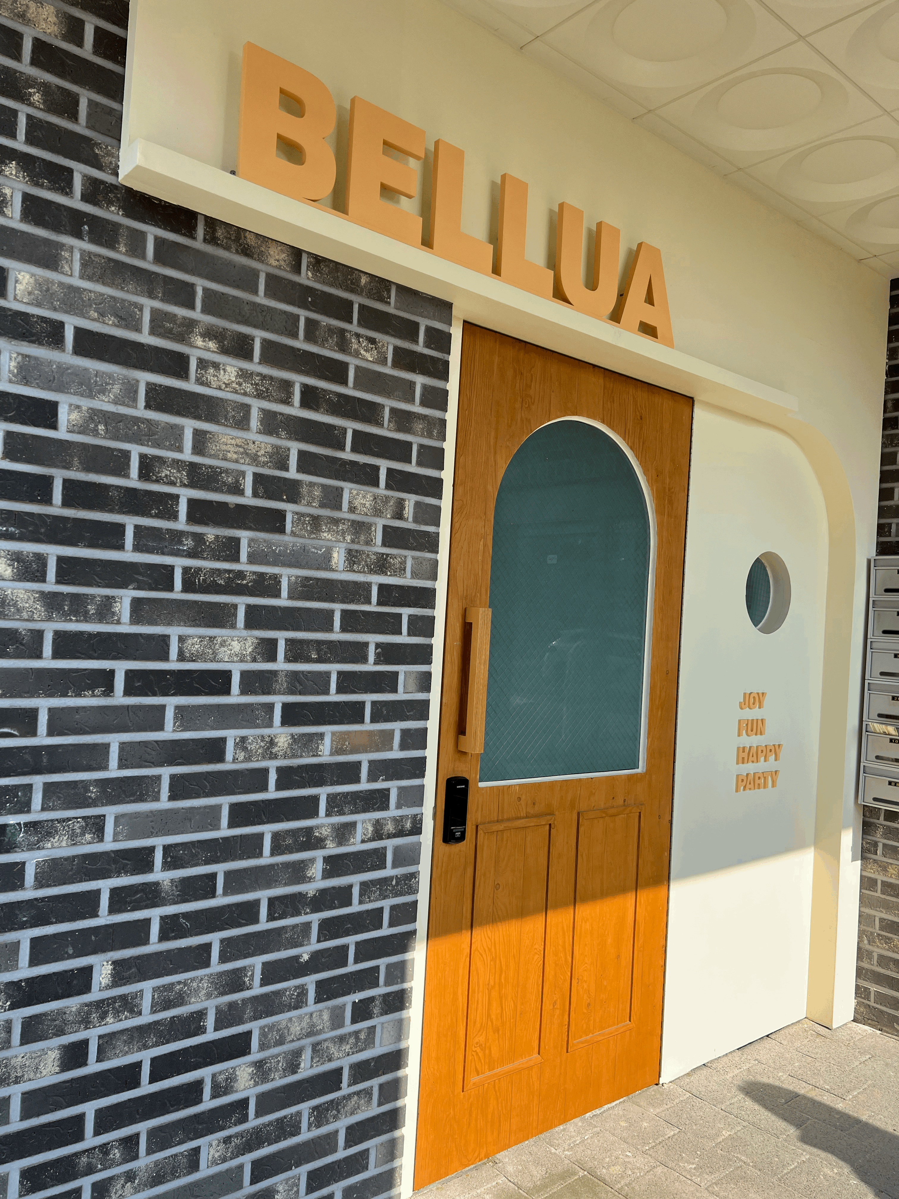 측면으로 돌아가면 동화속에 나올 것 같은 대문이 기다리고 있습니다. 옐로우 계열과 우드톤이 멋들어지게 어우러지는 외관에 안쪽 모습은 어떠할지 한껏 기대를 안고 입장하였습니다.