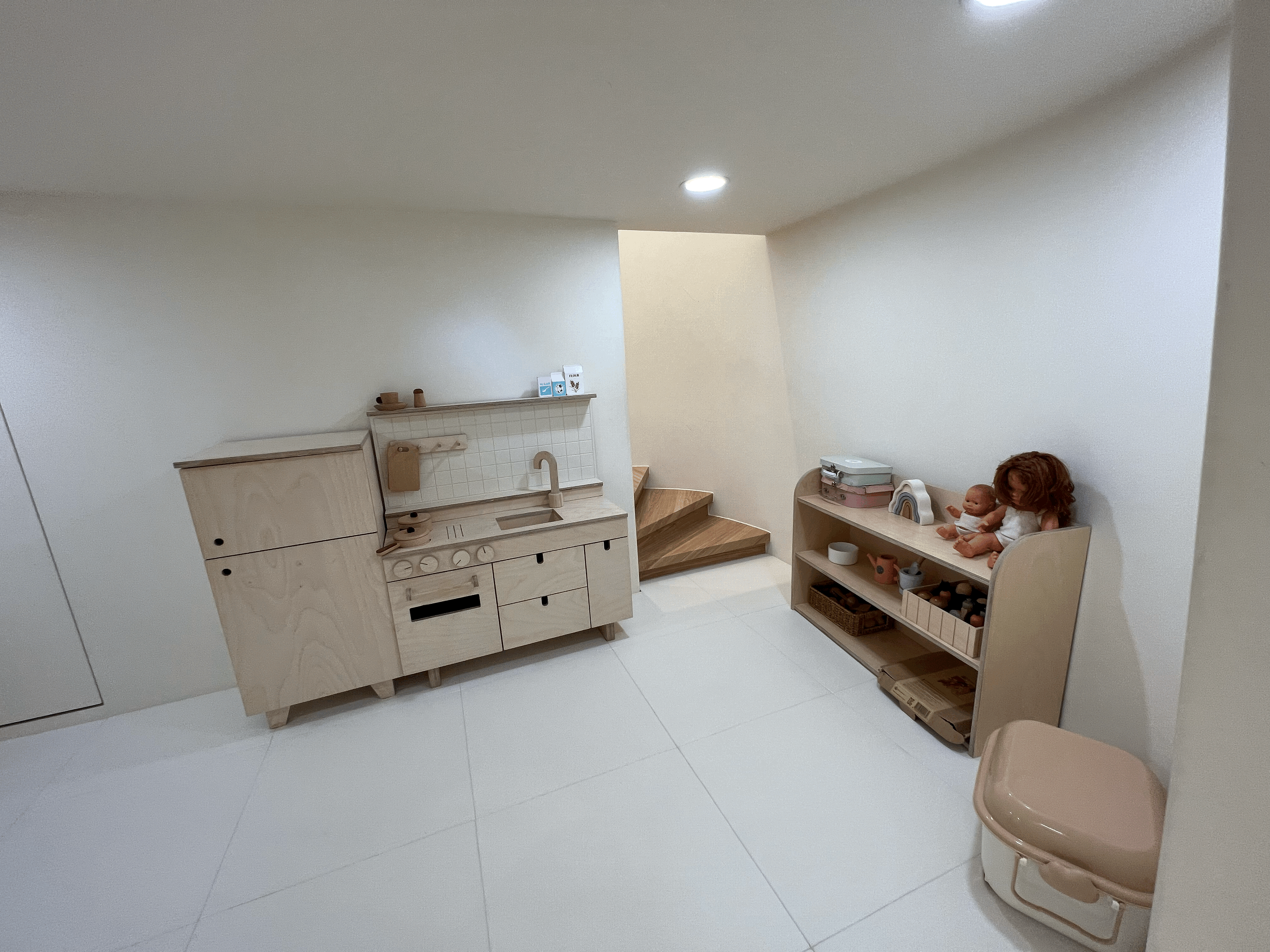 주방놀이와 인형놀이를 할 수 있는 공간이 마련되어 있는 소꿉놀이터 1층입니다. 동굴 같은 구조여서 아이들이 정말 좋아합니다. 단짝처럼 둘이 들어가서 한 시간을 놀기에 어른들은 맥주 한잔 할 수 있었습니다.