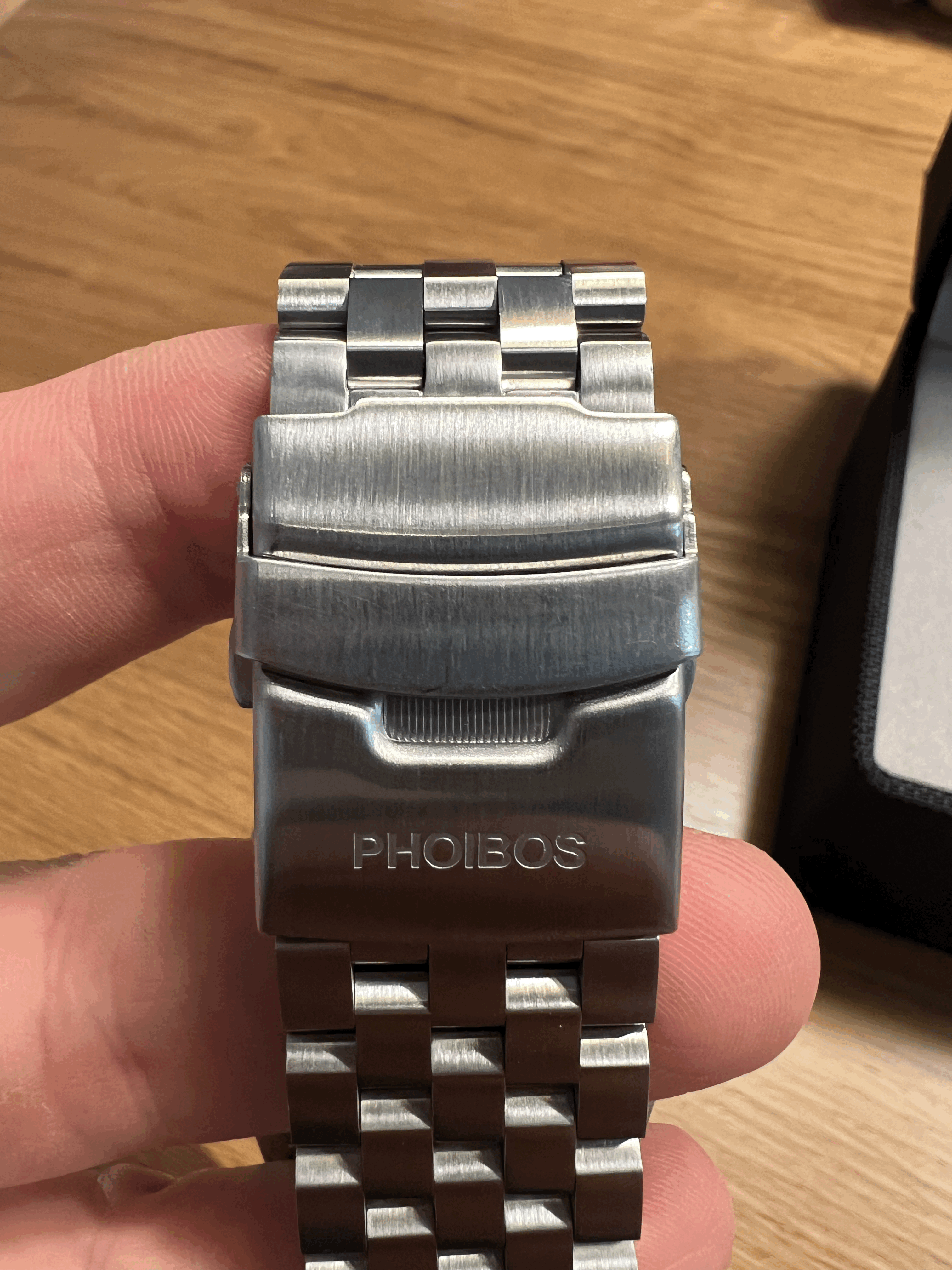 웨이브마스터는 스테인레스 스틸 밴드나 편안한 러버 스트랩으로 선택할 수 있습니다. 제 시계는 스틸 브레이슬릿이었는데 매우 남자다운 5 연줄의 브레이슬릿으로 착용감이 넓은 두께임에도 편안함을 느낄 수 있었습니다. 클라스프의 체결감도 상당하고 손톱이 아프지 않게 홈도 파여있어 사용자 경험 측면에서 아주 만족스럽습니다. 공홈에 나와있는 러버 스트랩도 한번 경험해 보고 싶네요. 하지만 300m 방수로 인한 케이스의 무게가 상당하기 때문에 전체 밸런스를 위하여 저는 스틸 줄을 지속 착용할 것 같습니다.